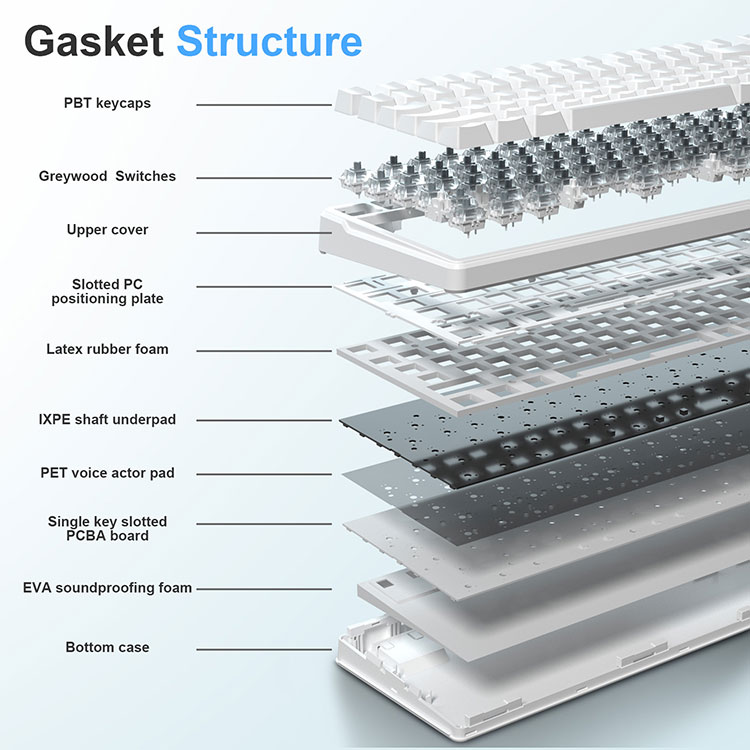 · 【GASKET Struktur mat Schallabsorberende Schaum】- GASKET Struktur garantéiert déi héchst Qualitéitssécherung mat grousser Haltbarkeet a stabiler Leeschtung. Equipéiert mat 4 Schichten vu méi décke Schallabsorberende Schaum, Silikon Dämpfer Pad, wat 40% Geräischer reduzéiert an 80% helle Klang läscht. Bréngt crémeg Kläng, natierlech a kloer Feedback, kee Kavitéite méi Geräischer.