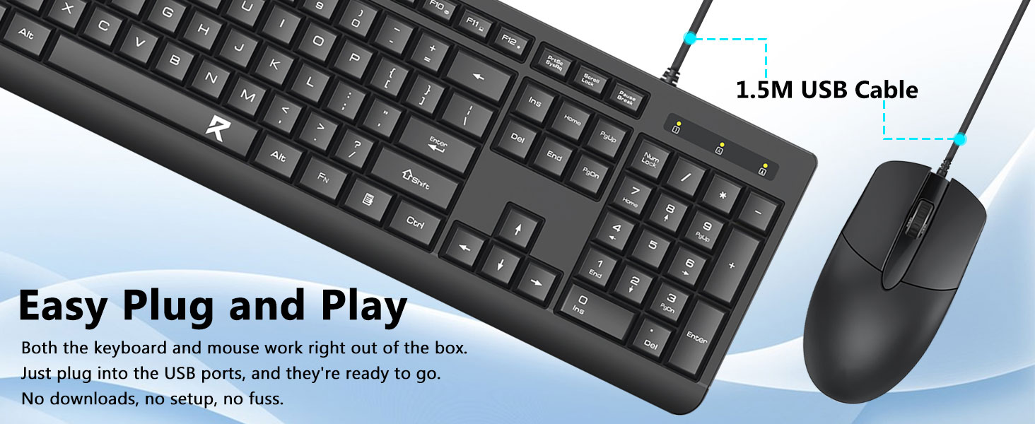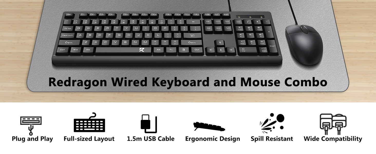 D'Black BC7543 Wired Keyboard a Mouse Combo ënnerstëtzt effizient Tippleistung fir Aufgaben wéi Dokumenteditatioun, Programméierung, E-Mail Kommunikatioun, a Büromanagement.