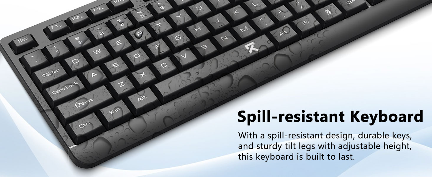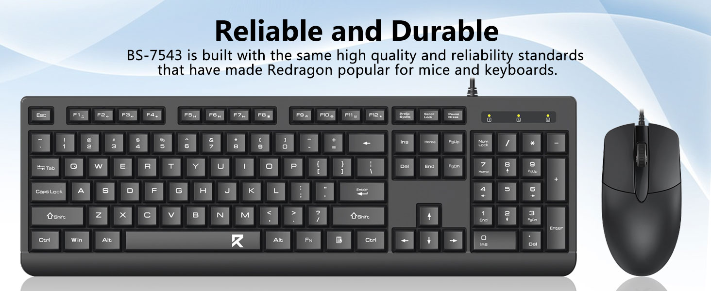 Entworf fir laangfristeg Zouverlässegkeet, d'Tastatur an d'Maus sinn aus haltbaren Materialien konstruéiert, déi alldeeglech Benotzung widderstoen. De klassesche schwaarze Finish ergänzt eng breet Palette vu Computeropstellungen, vu Büro-Aarbechtsstatiounen bis Heemdecker.