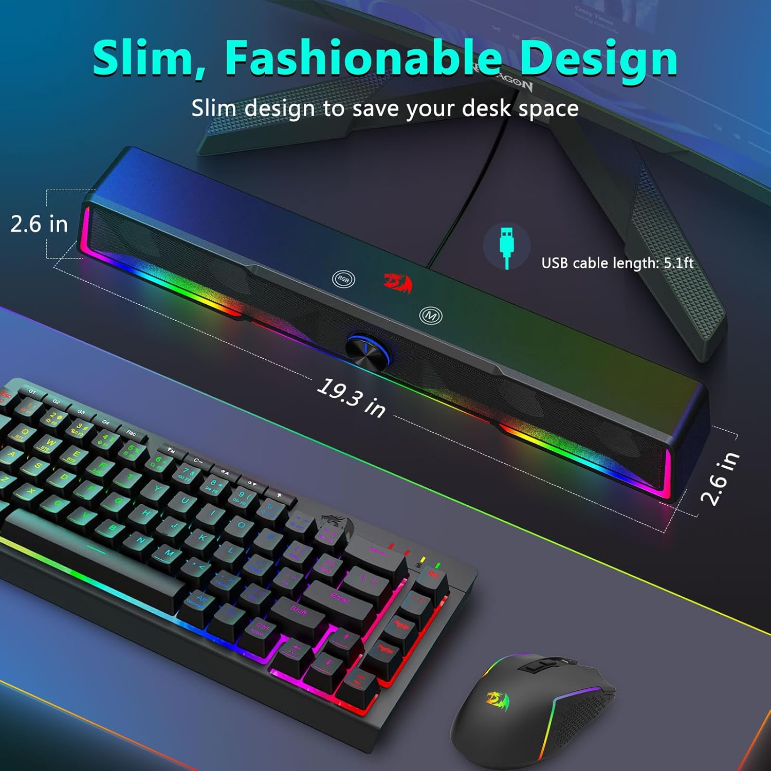 Am Géigesaz zu traditionelle voluminöse Lautsprechersystemer, passt dëse Soundbar-Stil Speaker suergfälteg ënner engem Monitor oder Laptop Stand, spuert wäertvoll Schreifplaz wärend eng immersiv Audioleistung liwwert. Mat béide Bluetooth an USB wired Konnektivitéit Optiounen, bitt de Black GS516 Bluetooth / USB Wired Connection Soundbar Volume Knob Computer Speaker villsäiteg Kompatibilitéit mat enger breet Palette vun Apparater, dorënner Desktop Computeren, Laptops, Pëllen, a Smartphones.