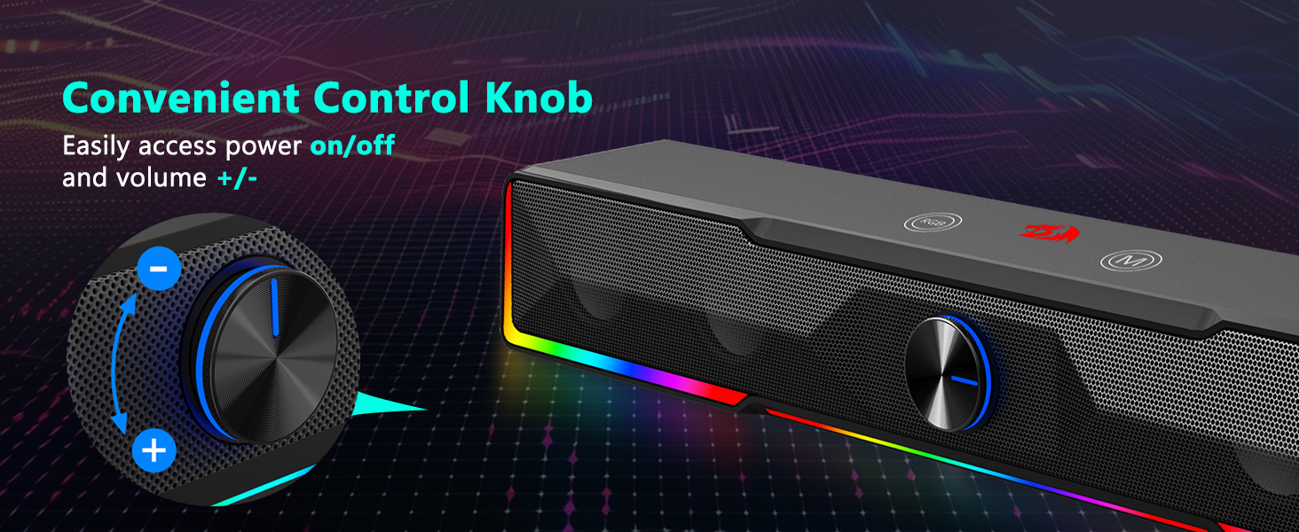 Eng Schlëssel Feature vum Black GS516 Bluetooth / USB Wired Connection Soundbar Volume Knob Computer Speaker ass seng intuitiv Volumen Knob Kontroll. Dëse kierperlechen Dial erlaabt d'Benotzer séier Audioniveauen unzepassen ouni Software-Astellungen ze navigéieren.