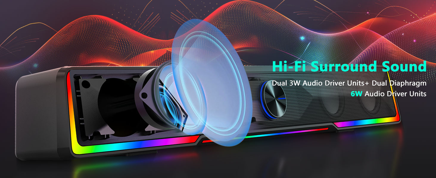 Héichqualitativ Toun spillt eng wichteg Roll an modernen digitalen Ëmfeld. Egal ob Musek lauschtert, un Videoversammlungen deelhëllt, Filmer kuckt oder Spiller spillt, en zouverléissege Computerspeaker kann d'allgemeng Multimediaerfahrung dramatesch verbesseren. De Black GS516 Bluetooth/USB Wired Connection Soundbar Volume Knob Computer Speaker ass entwéckelt fir mächteg Stereo Sound, flexibel Konnektivitéit a praktesch Kontroll an engem kompakten Soundbar Format ze bidden.