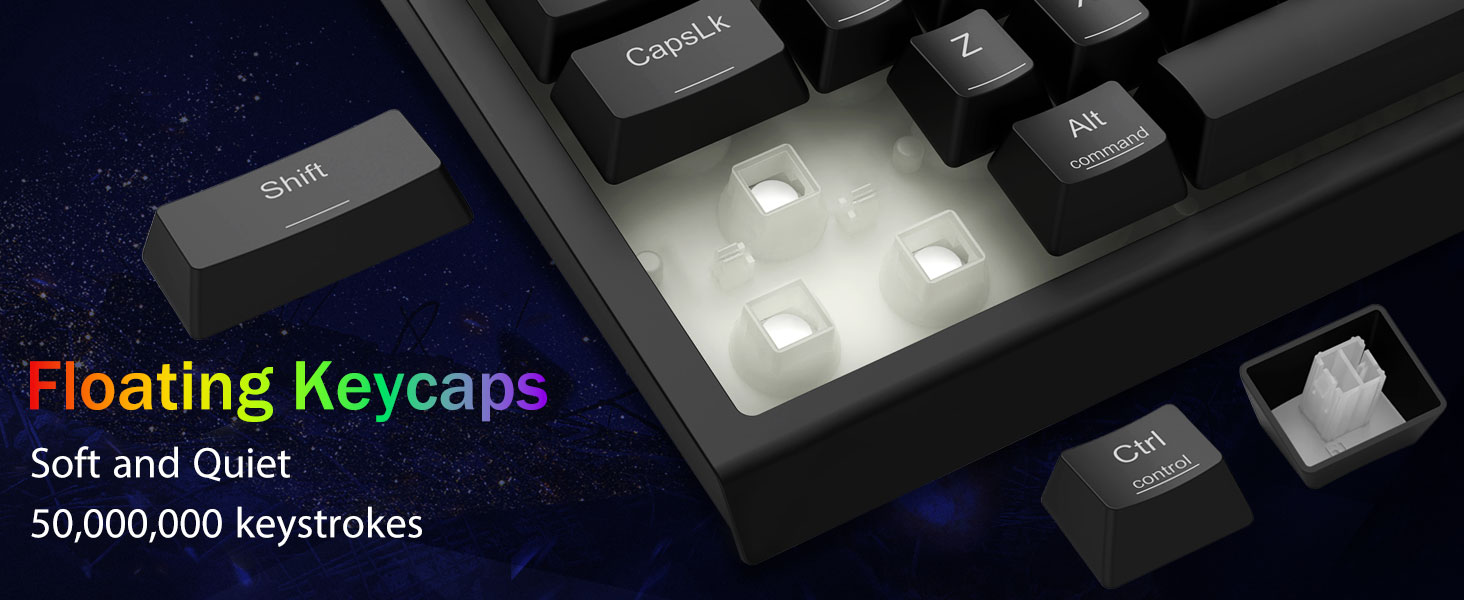 Whisper-Quiet Typen & gebaut fir ze daueren -Erlieft bal roueg Operatioun mat eisem flüster-rouege Spillschalter, ideal fir Büroëmfeld a Spillopstellungen. Déi klassesch Vulkanschalterstruktur suergt fir Haltbarkeet an eng beandrockend Liewensdauer vu 50 Millioune Tastatur.