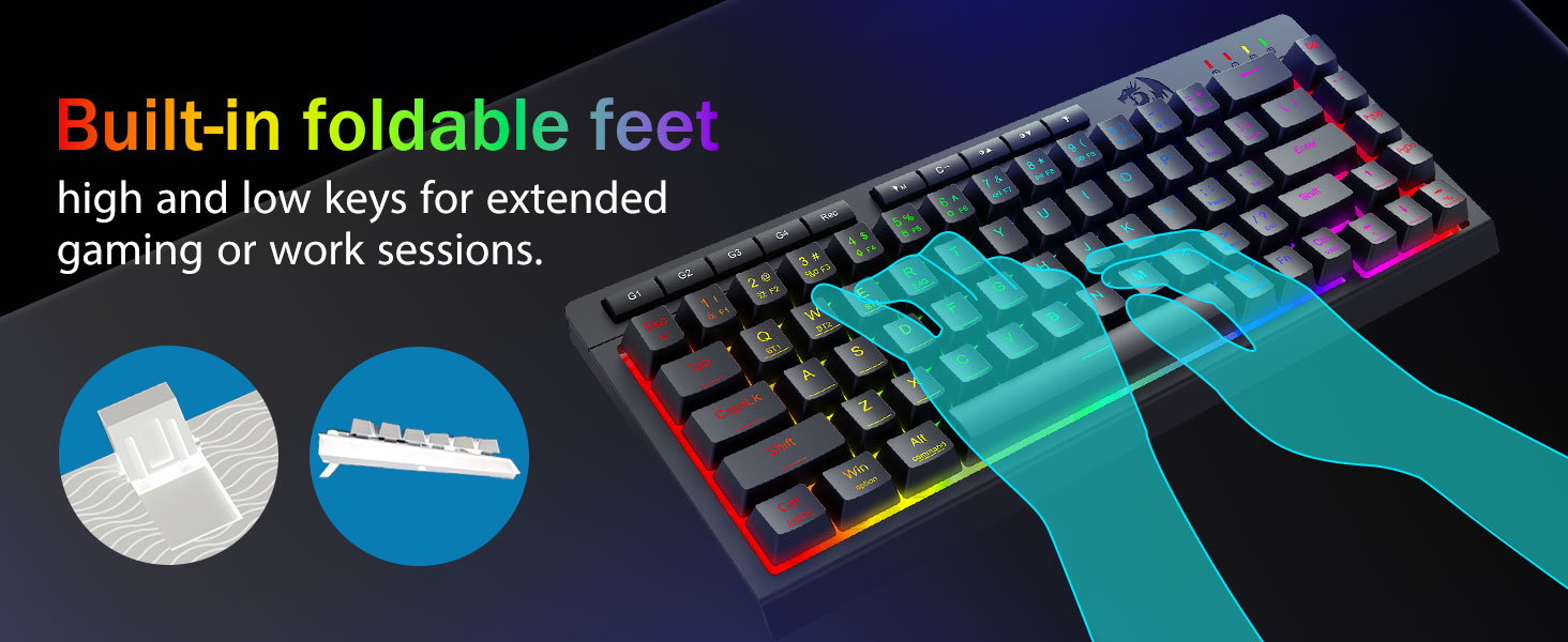 Immersive RGB Beliichtung & personaliséierbar Ambiance -Entlooss 16,8 Millioune RGB Faarwen mat 8 Preset Modi (Rainbow Wave, Reactive Typing) + 6 DIY Profiler. Upasst d'Hellegkeet vu liewege Glühwäin bis de Stealth-Modus - ideal fir spéiden Nuecht Gaming oder Bürogebrauch.