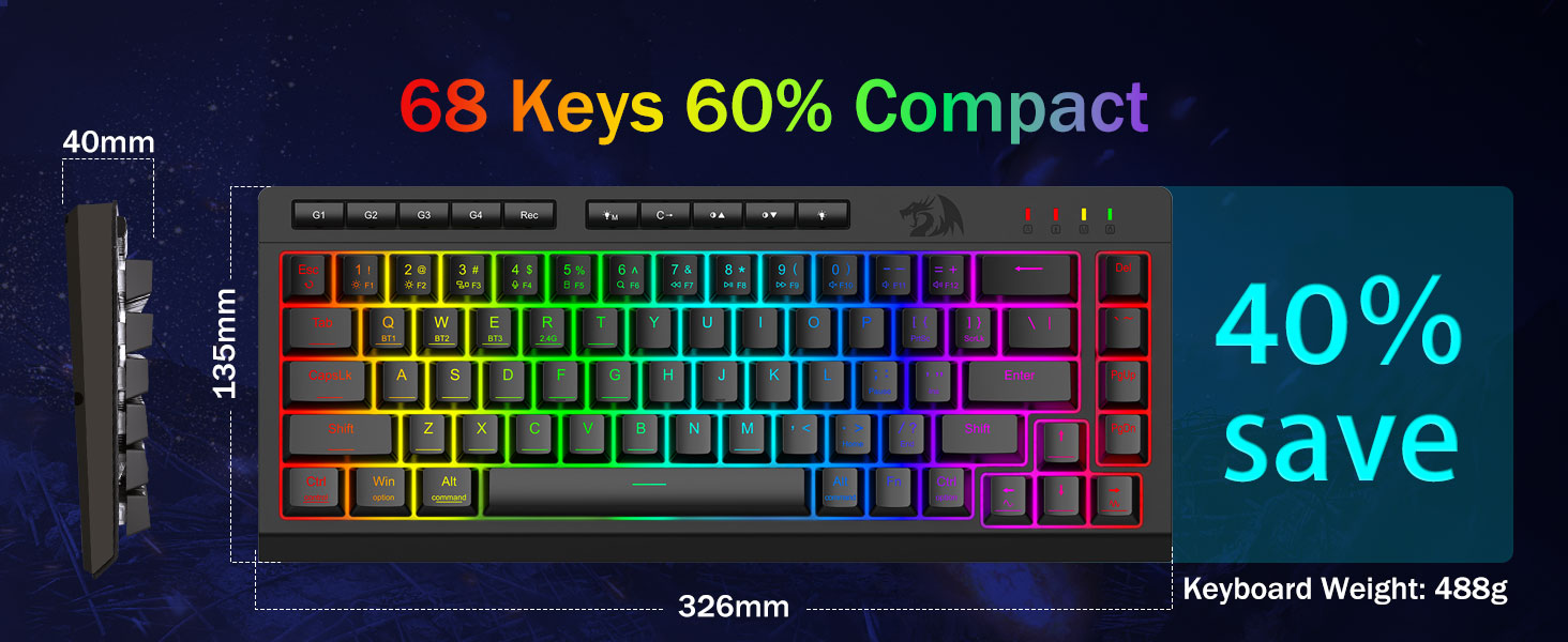 D'Black K519 Pro Portable Wireless Gaming Keyboard vu Redragon, hiergestallt vum Chuangquan, illustréiert professionnell Ingenieur fir Gameren a Fachleit. Säi versatile Tri-Modus Design ënnerstëtzt stabile Bluetooth, Low-latency 2.4GHz drahtlos, an USB-C Kabelverbindungen, wat et ouni Ustrengung tëscht dräi Apparater gläichzäiteg erlaabt. D'Tastatur enthält engagéierte Makro-Schlësselen, déi komplett iwwer intuitiv Software personaliséiert kënne ginn, wat d'Benotzer erlaabt komplex Kommandoen oder Ofkierzungen fir eng verstäerkte Produktivitéit a Spilleffizienz ze ginn. Dynamesch RGB Beliichtung mat multiple Effekter personaliséiert de Setup, wärend N-Schlëssel Rollover an Anti-Ghosting suergen datt all Tastatur präzis registréiert ass während intensiv Sessiounen.