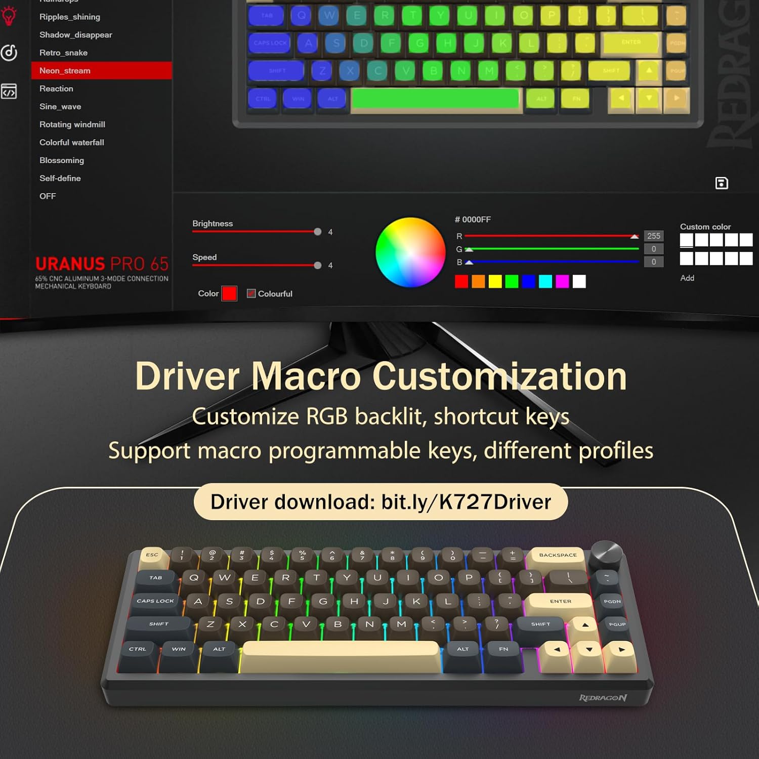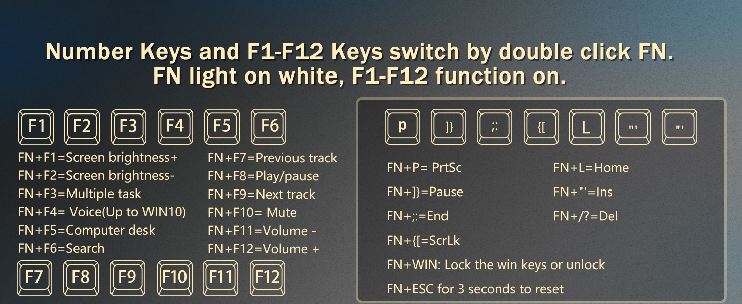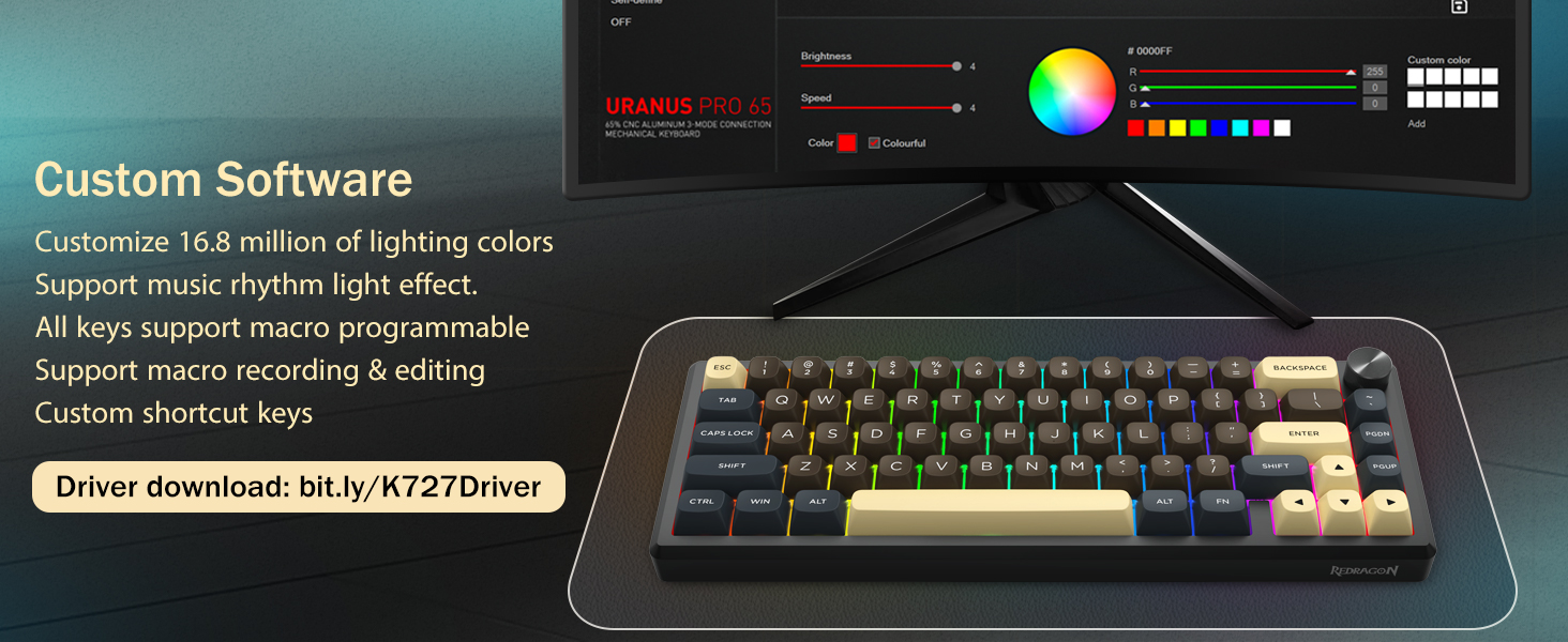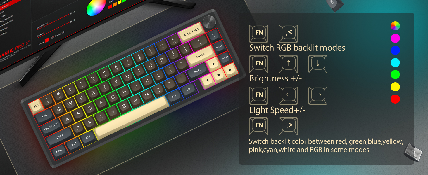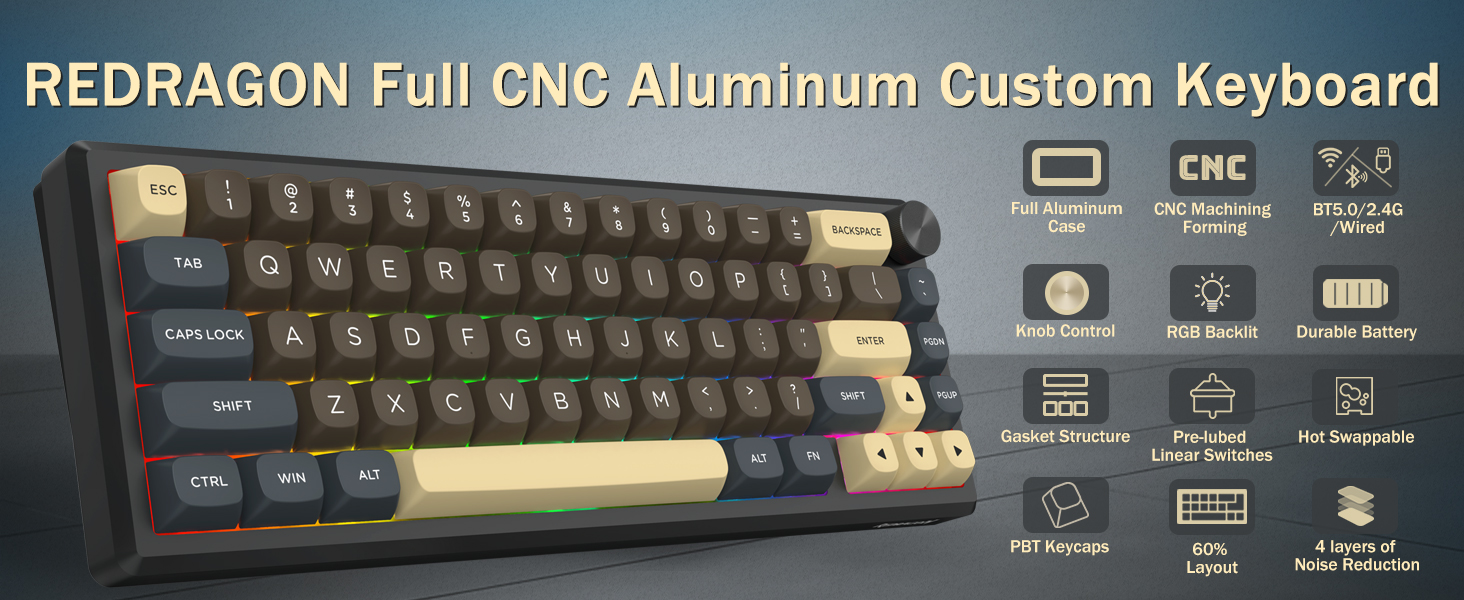 Mat sengem 60% Layout läscht dës Tastatur net wesentlech Schlësselen wärend d'Kärfunktioun duerch Tastekombinatiounen hält. Dësen Design hëlleft Schreifdësch ze reduzéieren a bitt méi Plaz fir Mausbewegung, sou datt et gëeegent ass fir béid Spill- a Produktivitéitsëmfeld.