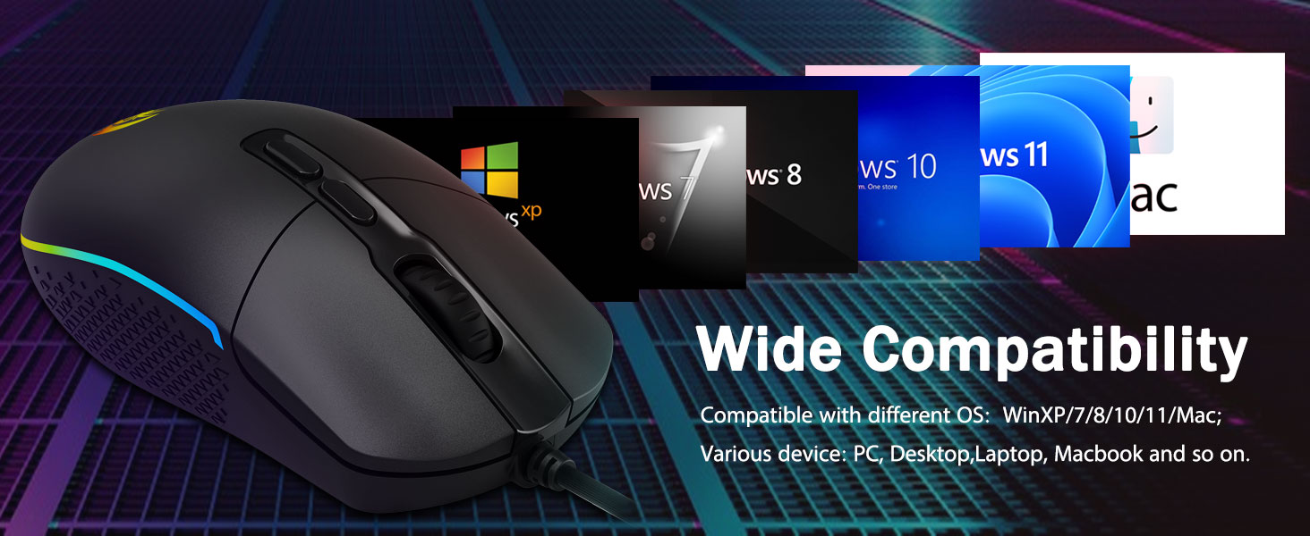 D'Wiel vun Die-hard Spiller- Egal ob Dir zielt, zielt, schneit oder attackéiert, eng professionell Spillmaus ass Är bescht Waff! D'Maus wäert Ären ideale Partner sinn. Perfekt kompatibel mat Windows XP/Vista/Win7/Win8/Win10/ME/2000/Mac, etc.