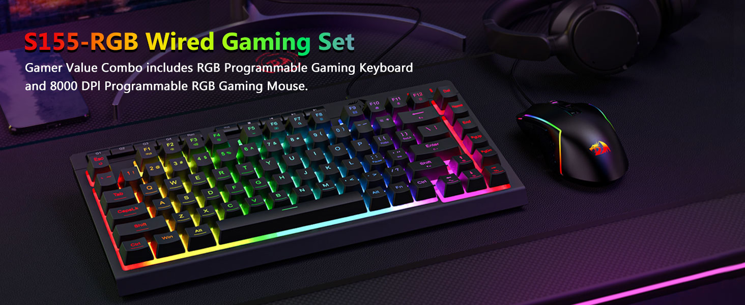 Black S155 RGB Backlit Wired Gaming Keyboard a Maus Combo