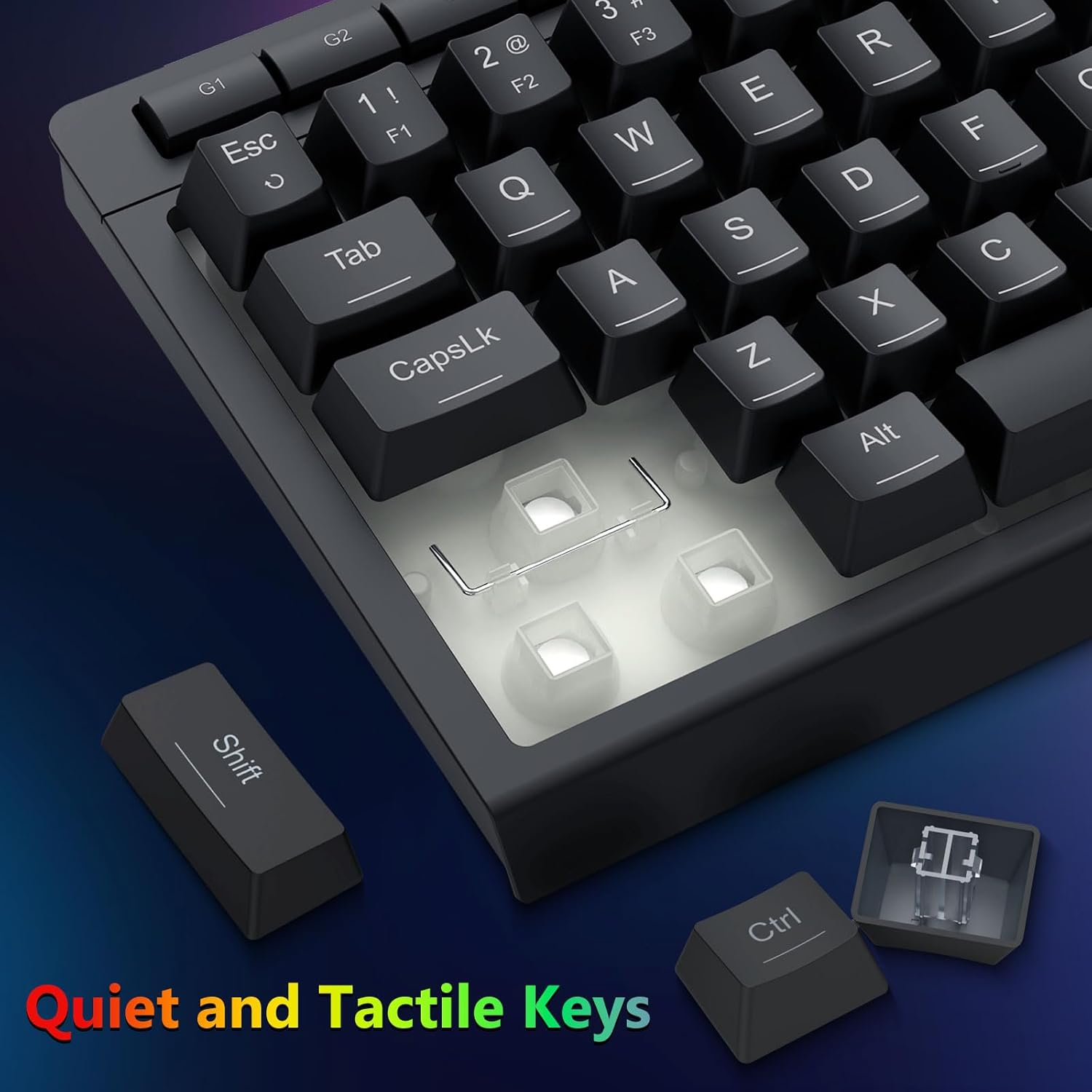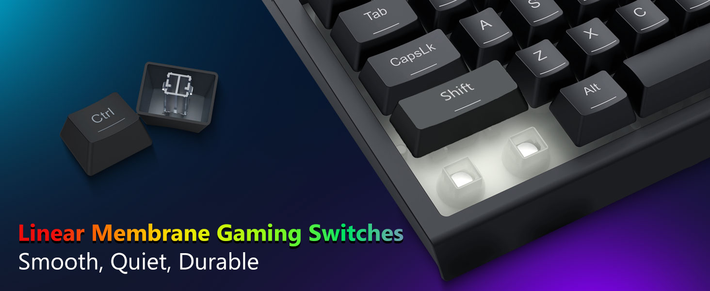 D'Schlëssele si konstruéiert fir konsequent Feedback a equilibréiert Aktuatioun ze bidden. Dëst garantéiert präzis Tippen an zouverlässeg Input wärend Spill oder Büro benotzt.