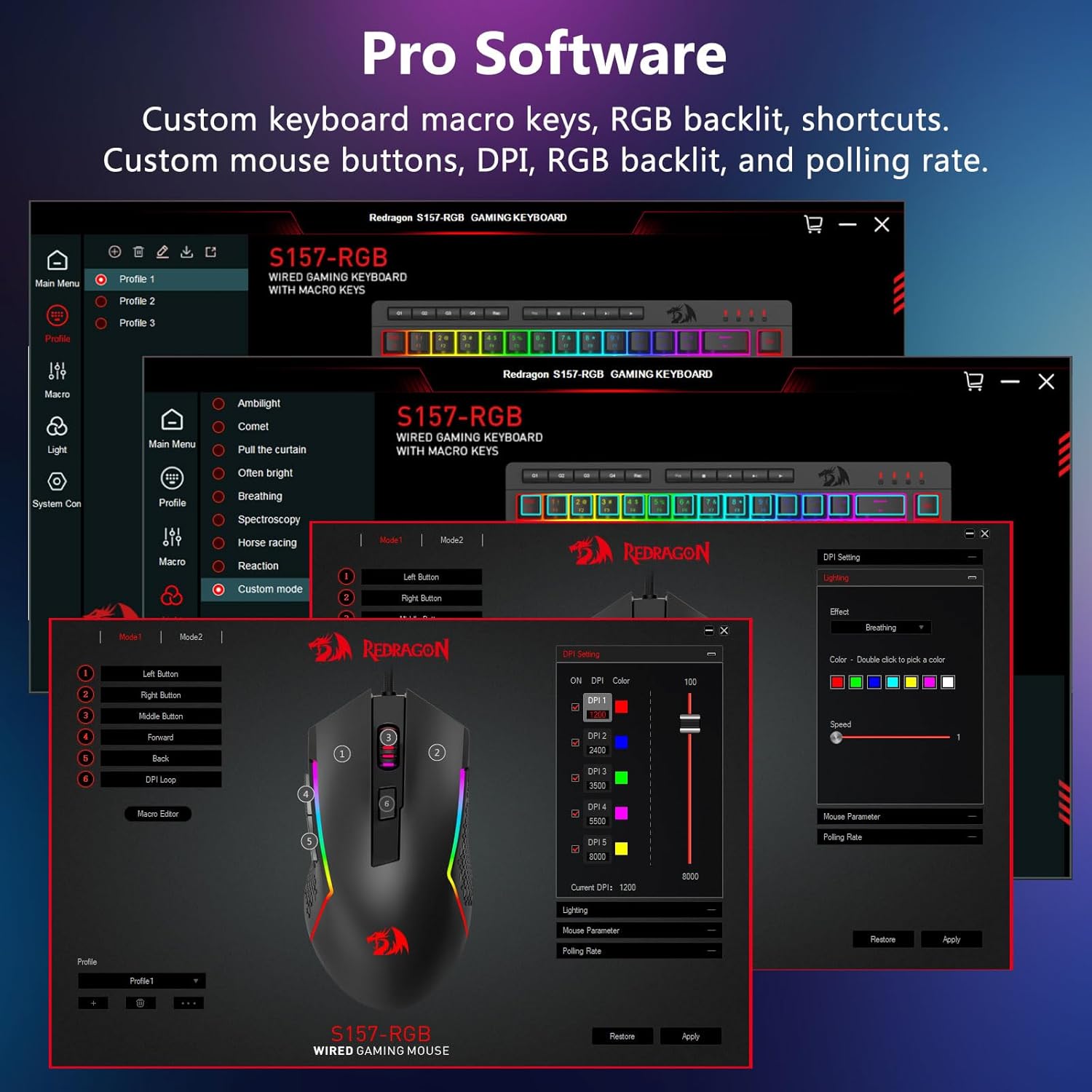 A: D'RGB Beliichtung ass normalerweis ouni zousätzlech Software verfügbar. D'Benotzer kënnen Zougang zu Basisbeleuchtungseffekter direkt nodeems de Gerät verbënnt, ofhängeg vun der Konfiguratioun.