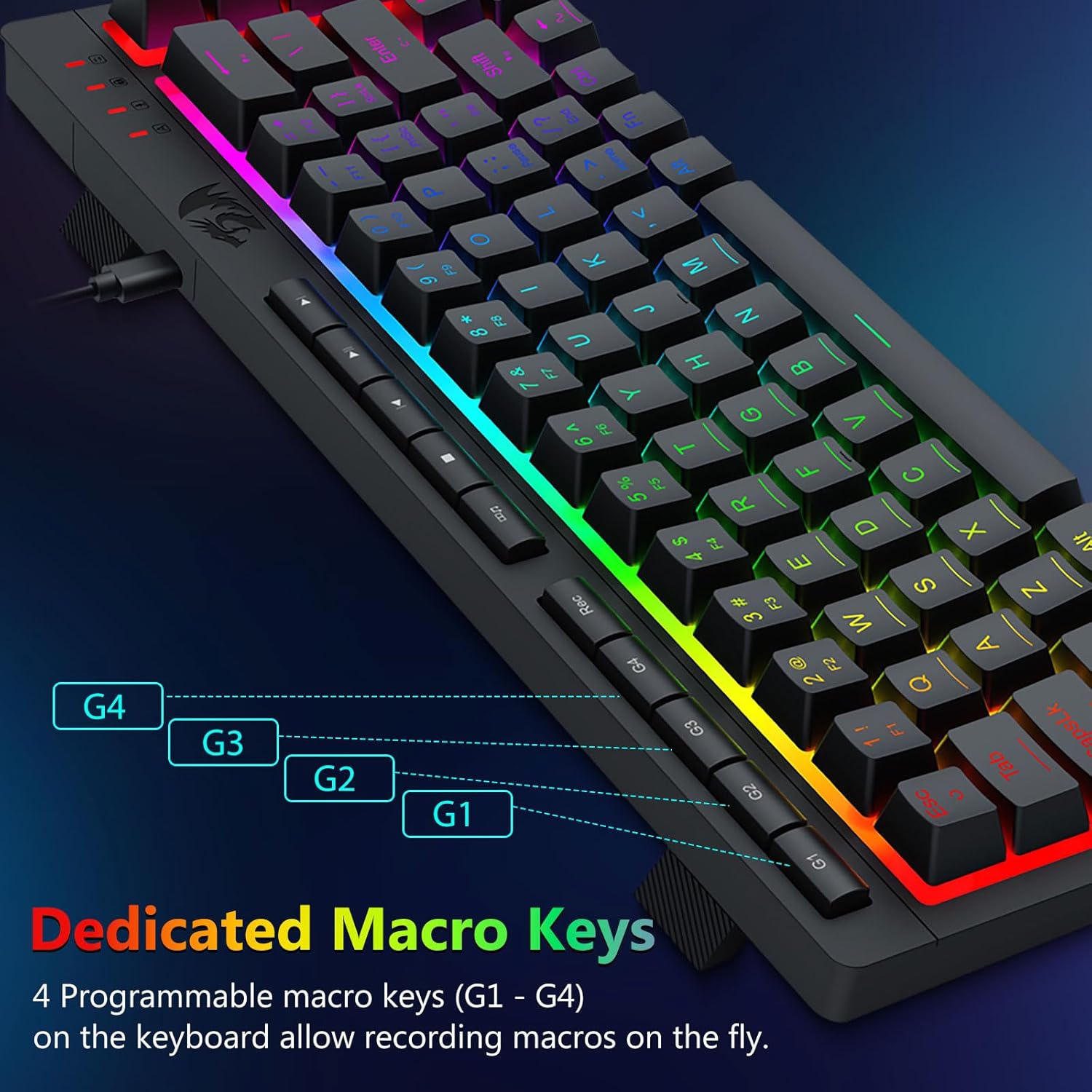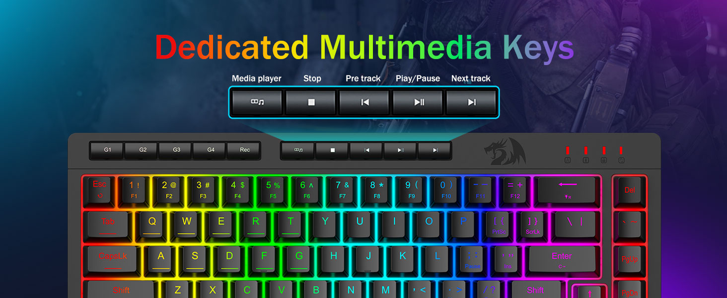 D'RGB Beliichtung verbessert d'Benotzerfrëndlechkeet an niddreg Liichtbedingungen, wat d'Benotzer erlaabt Schlësselen einfach ze lokaliséieren ouni d'Konzentratioun ze beaflossen.
