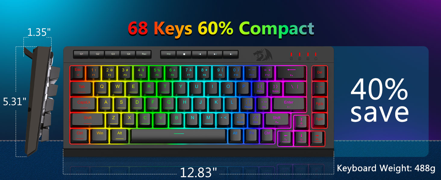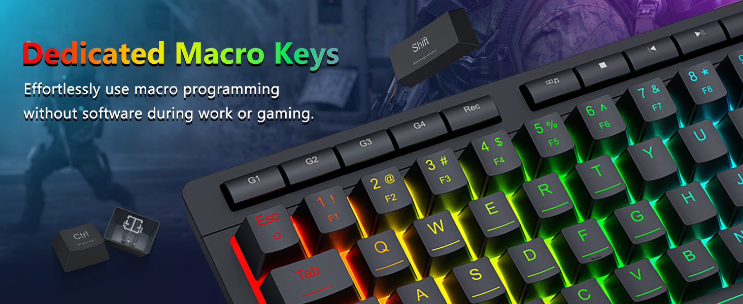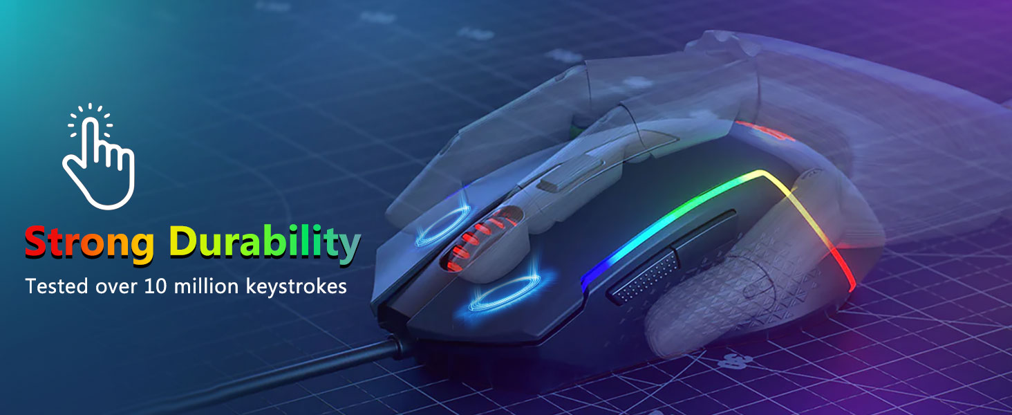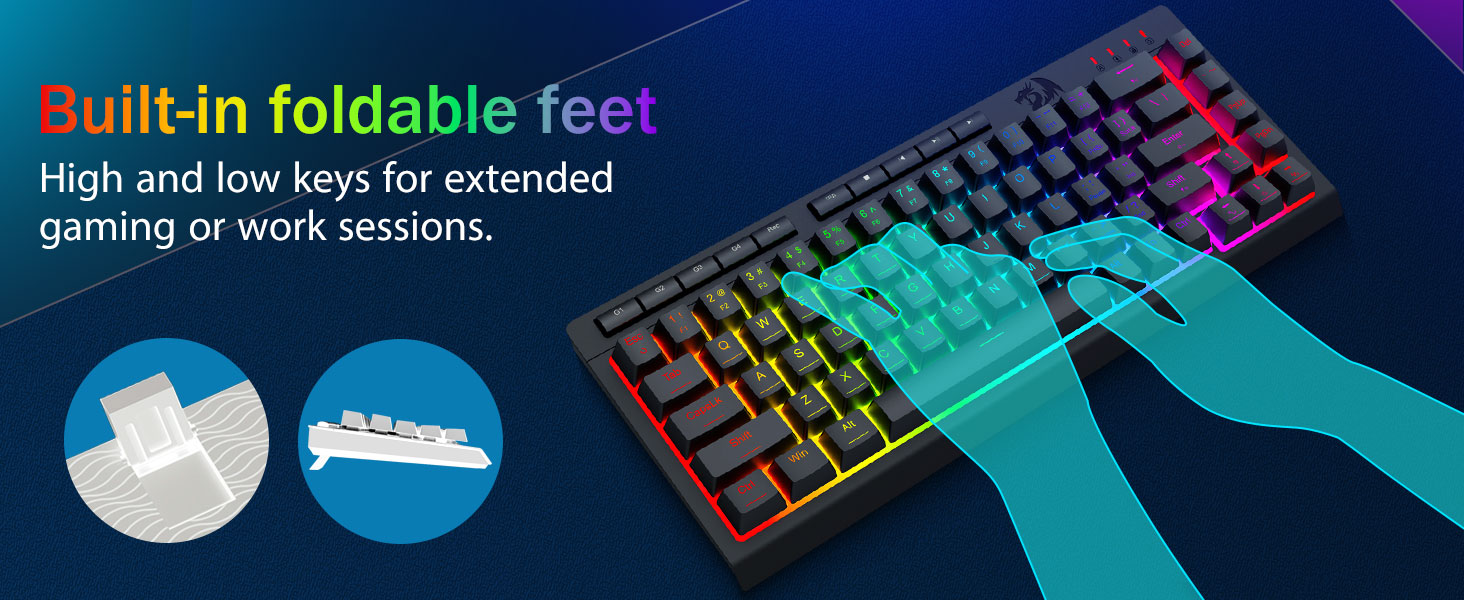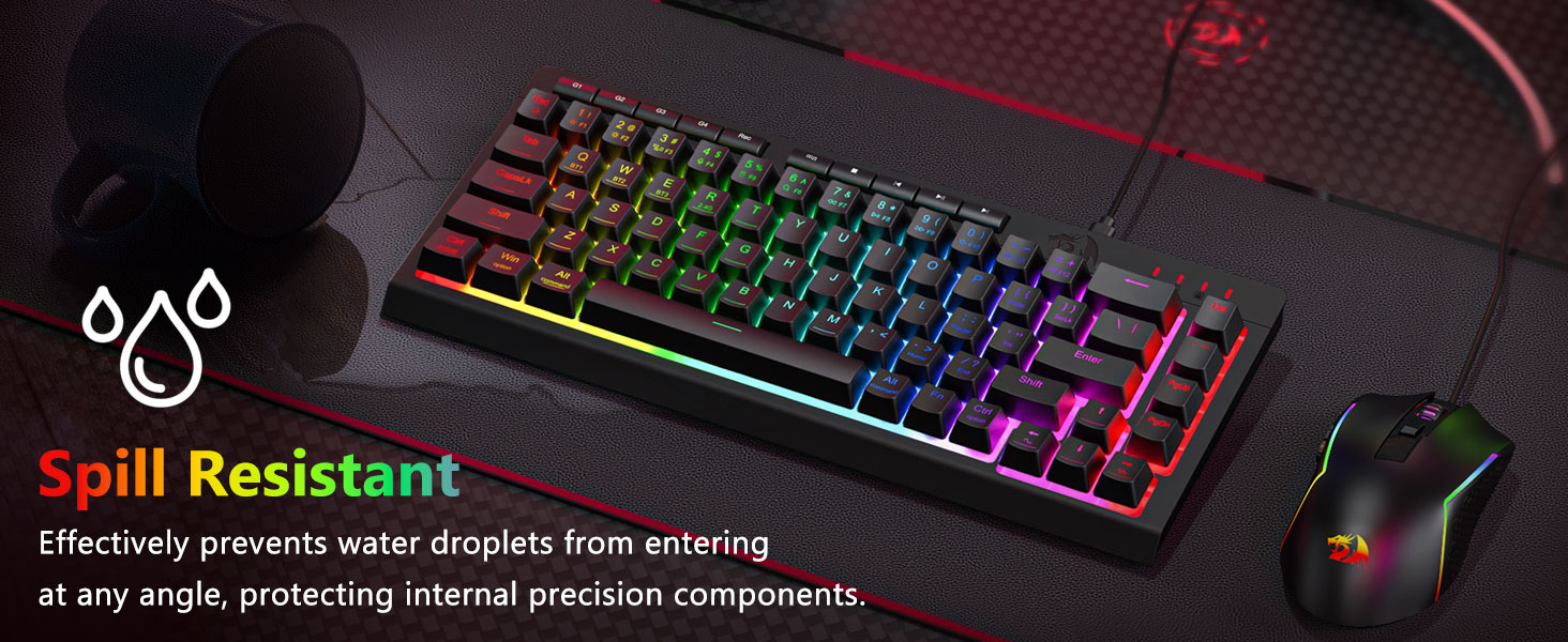 Keycaps si fir Haltbarkeet a konsequent Textur entwéckelt, fir Komfort iwwer laang Perioden ze halen. D'RGB Beliichtung ass gläichméisseg verdeelt, d'Visibilitéit verbessert ouni Oflenkung.