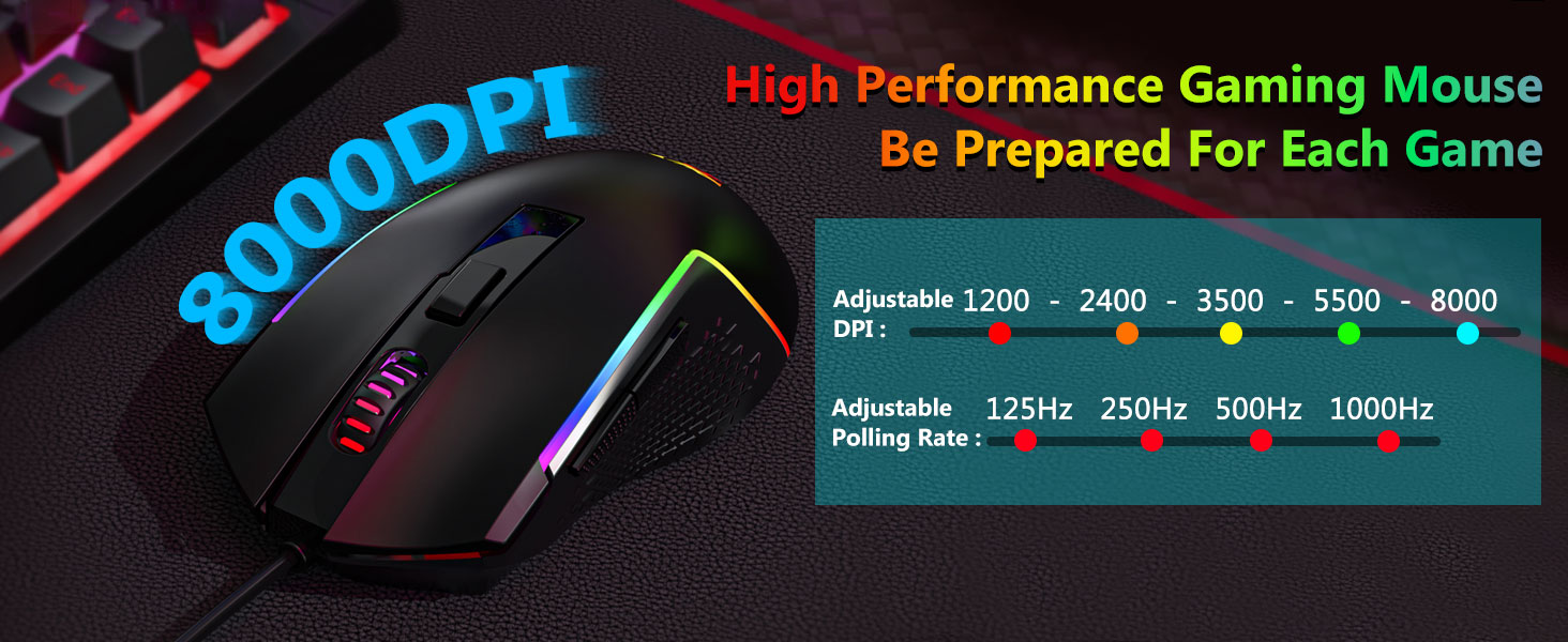 Déi abegraff Maus ass mat engem opteschen Sensor ausgestatt, deen stabil Tracking a glat Cursorbewegung ënnerstëtzt. Upassbar DPI Astellungen erlaben d'Benotzer d'Sensibilitéit mat verschiddenen Aufgaben ze passen.